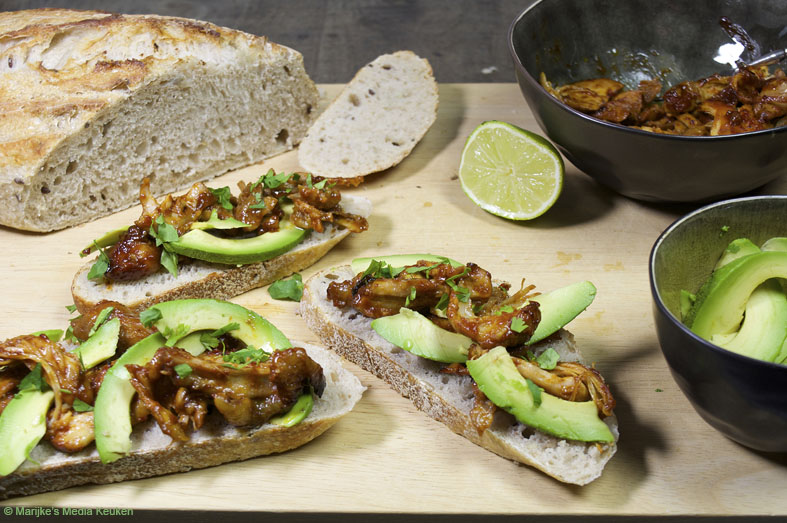 admin2019-01-25T10:24:41+01:00Zo’n broodje pulled kip met avocado en barbecuesaus doet het bij ons altijd goed op de zaterdag. Als lunch maar ook als lekker hapje als er onverwacht gasten komen binnenvallen. Zo’n blad vol lekkers ziet er aantrekkelijk uit en het is gezellig om met elkaar van dit ‘vingerfood’ te genieten. Voor 8 broodjes 2 el [...]