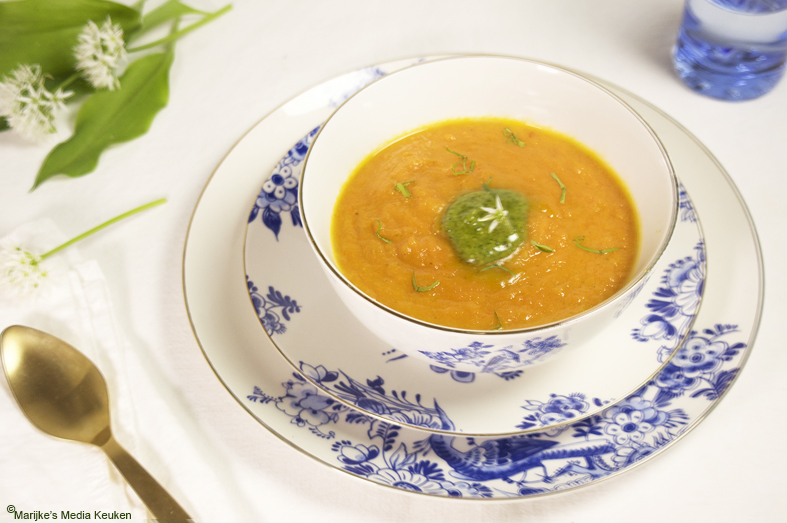 Pittige oranjesoep met daslookpesto