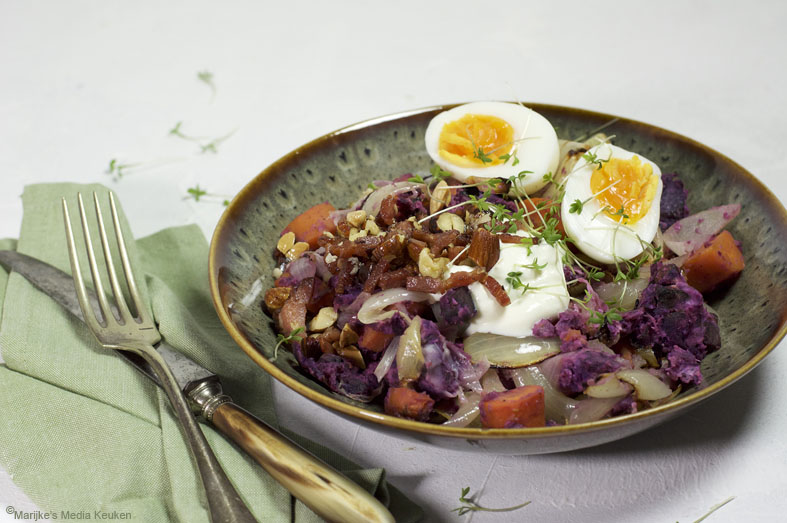 admin2020-01-05T13:08:09+01:00Deze geroosterde hutspot met zoete aardappel is een kleurrijke en lekkere variatie op de traditionele hutspot. In plaats van gewone aardappelen worden zoete aardappelen gebruikt en dan niet de oranje variatie maar zoete aardappelen met prachtig paars vruchtvlees. Ook worden de groenten en de aardappelen niet helemaal fijngestampt maar blijven ze lekker grof. En deze [...]