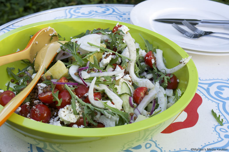 admin2019-04-17T12:28:38+01:00Deze venkelsalade met linzen en buffelmozzarella kun je goed voorbereiden. Snijd alle groenten en doe ze in een slakom of schaal. De rucola voeg je nog niet toe. Dek de kom af en zet tot gebruik in de koelkast. Neem de kom 15 minuten voor het eten uit de koelkast en maak de salade af [...]