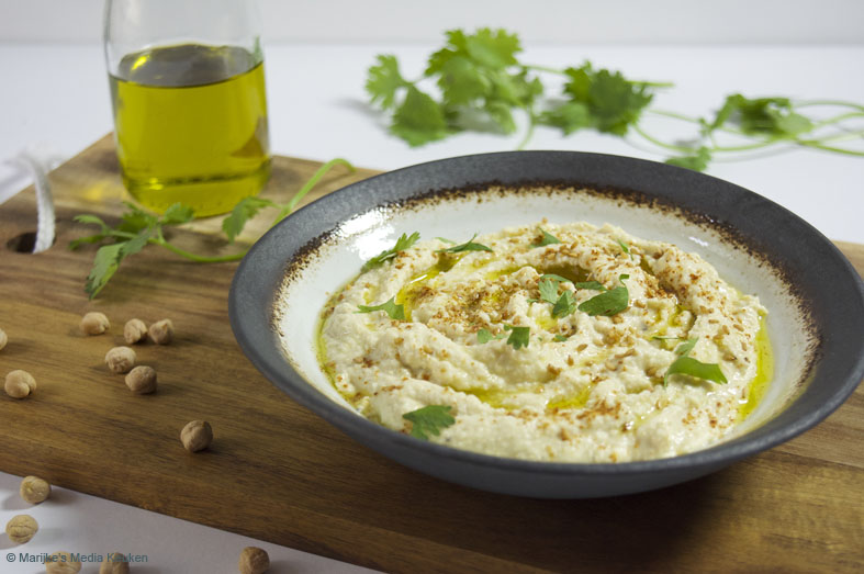 Een heerlijke hummus maken is een kwestie van proeven! Ik maak hummus meestal eenmaal per week, vaak een dubbele portie omdat wij graag hummus eten. Als dip bij de borrel, hartig tussendoortje, op brood en in salades, die hummus gaat toch elke week weer helemaal op! Ik kook één keer in de twee weken een flinke portie kikkererwten en die bewaar ik dan in porties in de vriezer. Zo heb ik altijd zelf gekookte kikkererwten in huis.