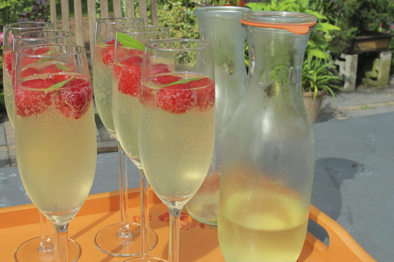 • Serveer de vlierbloesem bubbels met een paar framboosjes en een blaadje verveine.